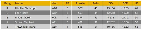 | Rang | Name | Club | PP | PTS | Aufn | GD | BED | HS |