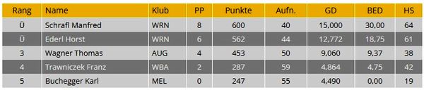 | 1. | Niederleitner Peter | KRE | 8 | 346 | 65 | 5,323 | 10,00 | 33 |